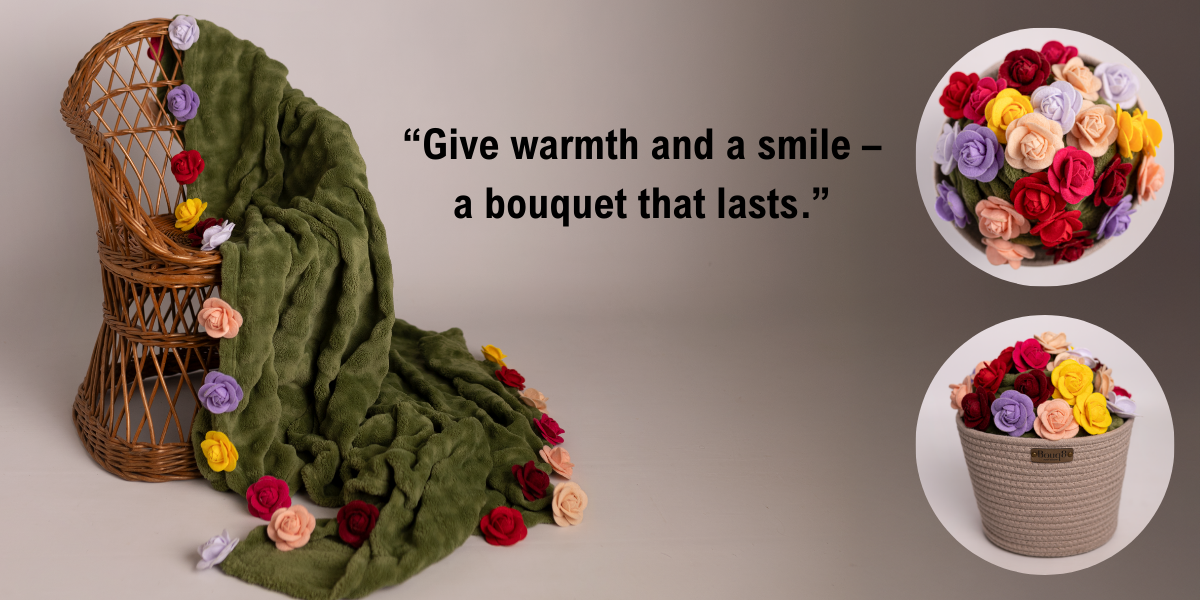 Discover the beauty of handcrafted blankets that blossom into bouquets. Each Bouq8 piece is made with care and emotion, designed to warm the heart and decorate your space. It’s more than a gift – it’s a moment, wrapped in love.